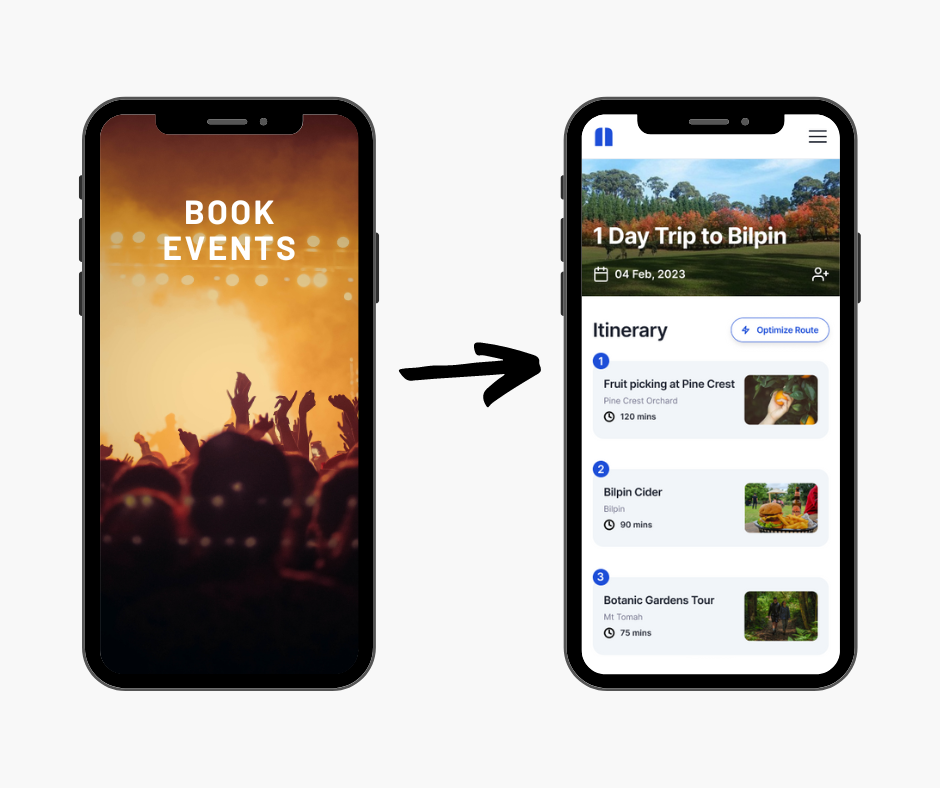 Event booking apps excel at finding and reserving events, but they frequently lack seamless integration with user-friendly itineraries.