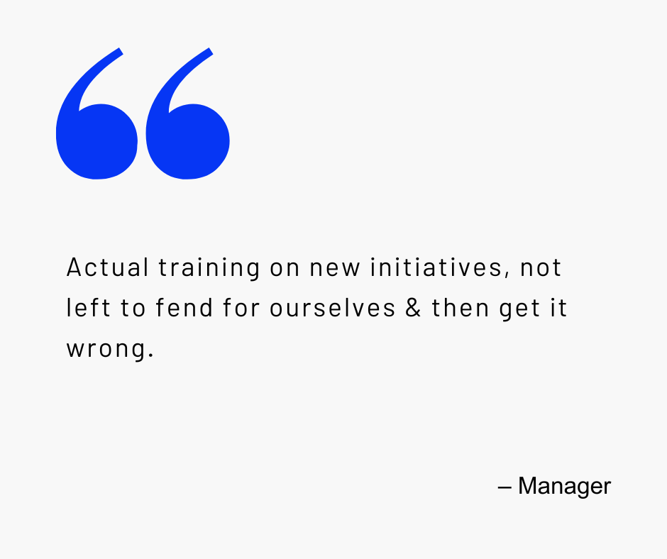 Retail Shop Managers noted cases of negative communication from their Area Managers, with harsh feedback. Volunteers reported instances of inappropriate responses from managers.
